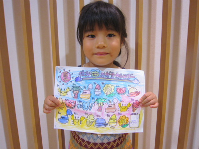 後ろの白い部分もキレイに色を塗ってくれて、とてもカラフルなカレンダーに仕上げてくれましたー[:チョキ:]
