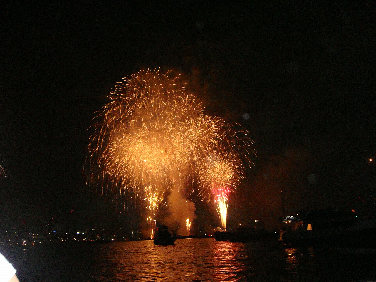 ほんとに、目の前で上がってる[:ぎょ:] お、音がお腹」に響いてくる[:ぎょーん:] 近いからすごーくきれいだし、大きいし・・皆、船酔いなんて忘れて楽しんでましたよ[:チョキ:][:にかっ:][:チョキ:]